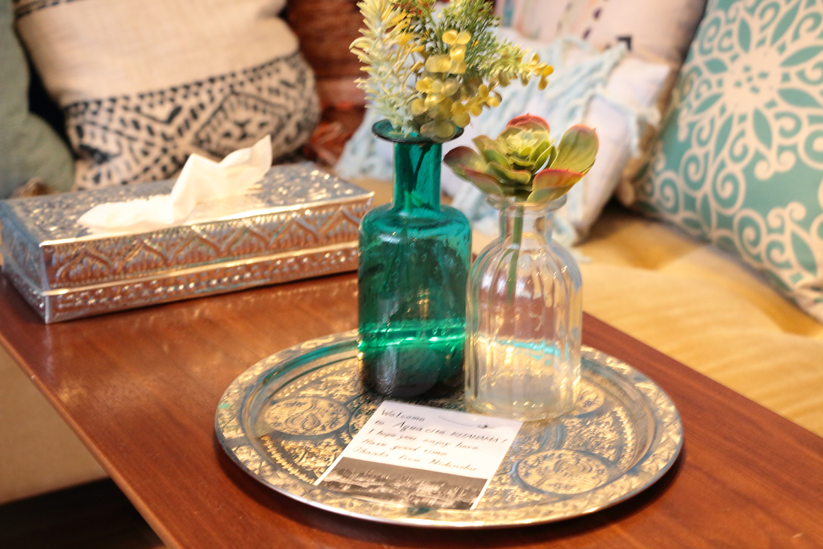 ▲インテリアなど細部にまでこだわるのが山根さん流。宿泊される方にはウェルカムメッセージとともに、ウェルカムクッキーを贈呈。ウェルカムクッキーには、地元北浜の銘菓GOKANのものを採用している。
