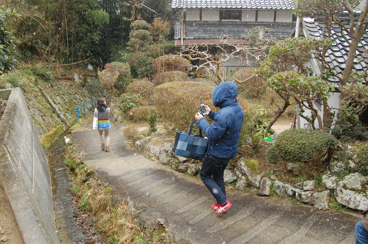 山内さんに「ありがとうございました!これからバスで山奥の方に行きます~。」とお礼をすると、「そんなん私が送っていってあげるわよ~。雪降ってるし、バス少ないし」と夢のオファーをいただきました。千早赤阪村のひと優しいっす。
