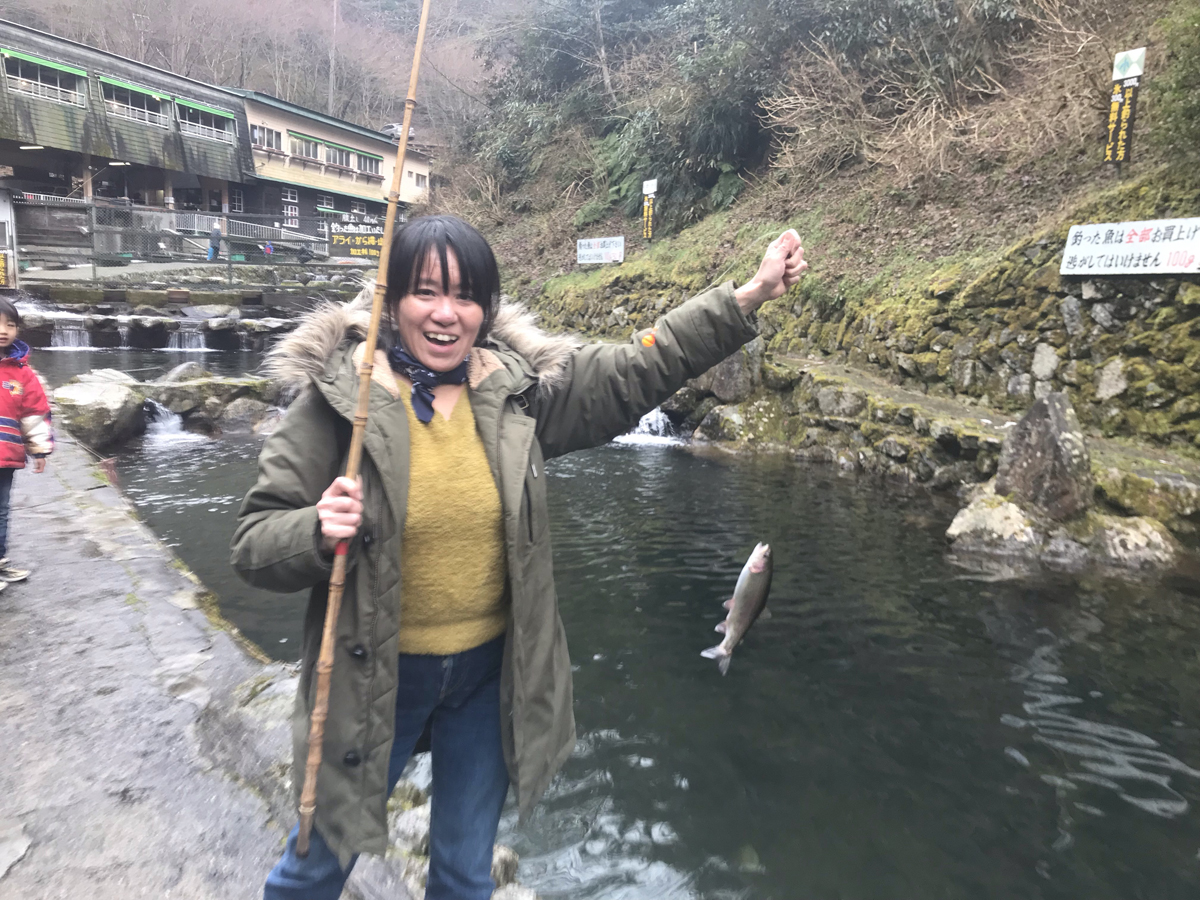 続いてともえさん、山内さんもチャレンジ。実は山内さんは釣り初体験。マダームなのにキャーキャー大騒ぎしながら釣りあげました。
