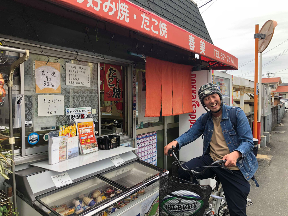 連れてきてもらったのはラグビー場のすぐ近くのたこ焼き屋「春美」。ラグビーやっている人で知らない人はいないらしい名店だそうです。