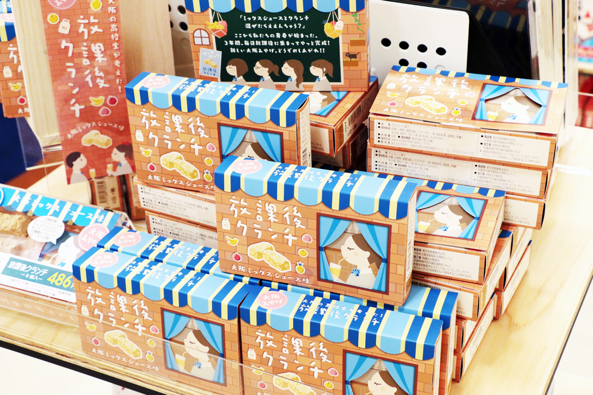 「コレ、今日から発売なんですよ!」と真っ先に紹介を受けたのが、新商品の『放課後クランチ』。なんとこの放課後クランチ、手掛けたのは現役の高校生なんだとか。大阪ビジネスフロンティア高等学校の学生さんが、「大好きなミックスジュースを名物にしたい!」と、いちびり庵を運営する株式会社せのやとコラボして出来上がった商品。コンセプトはもちろんパッケージも、デザイナーのサポートを受けながら自分たちでデザインしたそうです。彼女たちが高校1年生のときから始まったこちらのプロジェクトは、発売が実現するまで実に3年もの月日が経っています。まさに、彼女たちの青春そのもの!一生懸命に売り込みをする彼女たちの健気さに負けて、つい購入してしまいました。