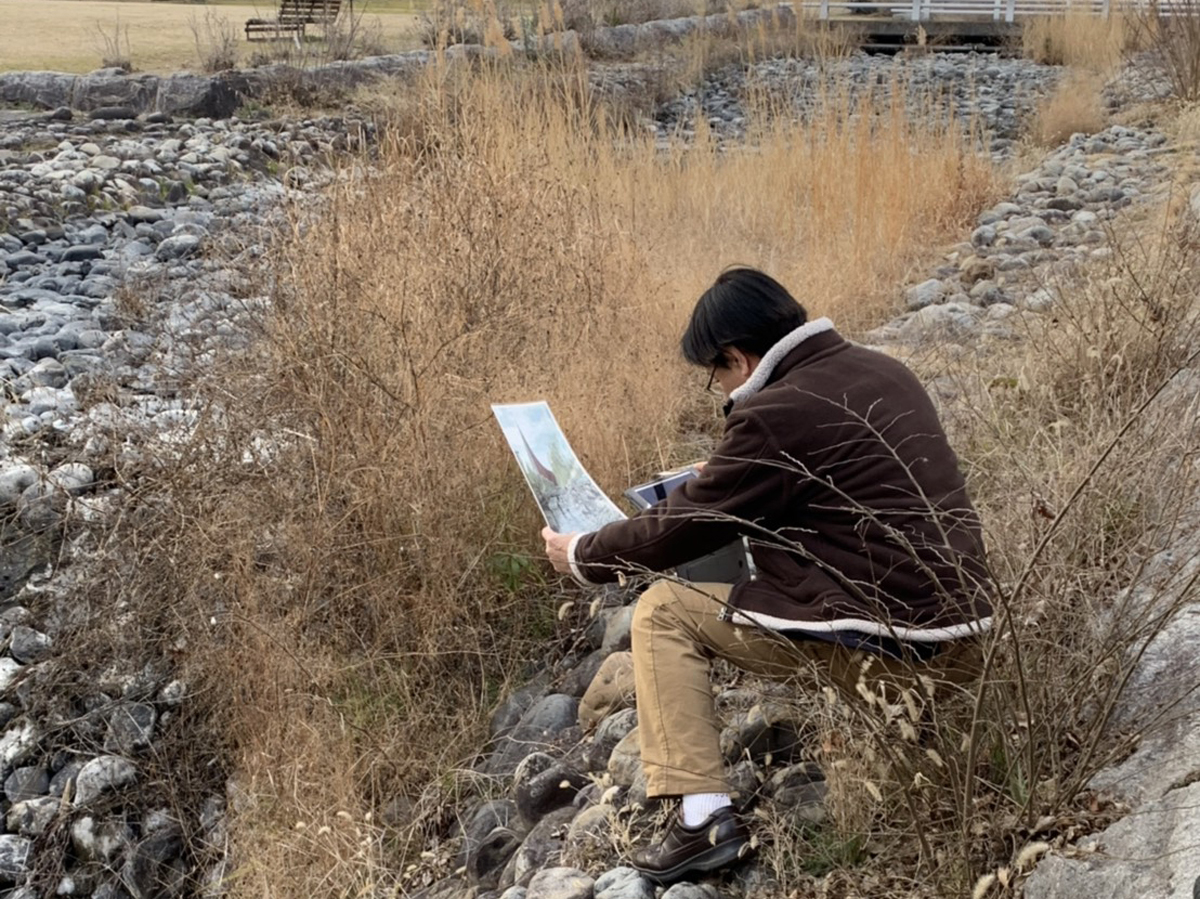 解説を聞きながらツアーをまわっている時、水辺で当時の写真と見比べていると白井さんが何かを発見!「ん?あれ、この写真の石じゃない?」と、欄干を越えて写真を撮りに行ってしまいました。本当の少年のようで少し危ないと思いつつも、クスリっと笑ってしまった瞬間でした。