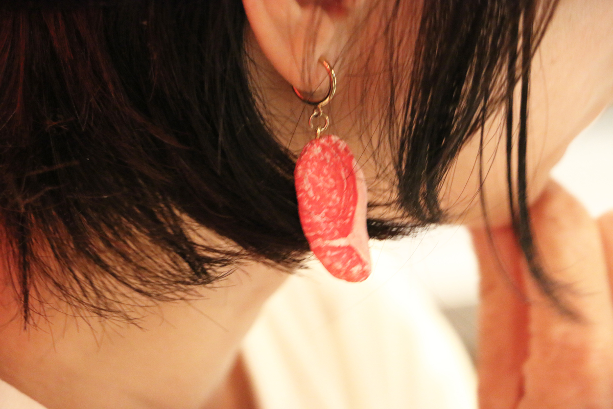 ▲いかりんさんは、耳にも肉のピアスを付けています。
