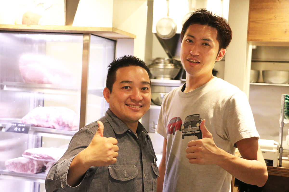 ▲「焼肉バル 炎家」の店長と料理長さんも笑顔で取材に協力してくれました。
