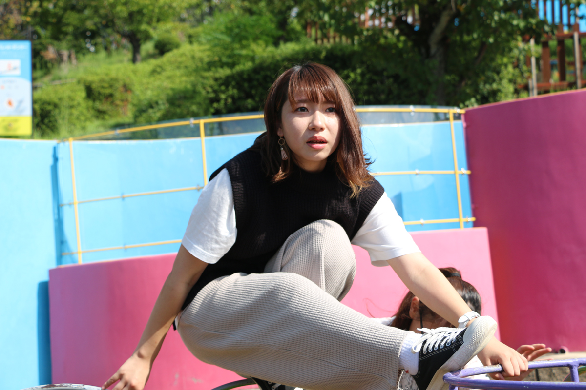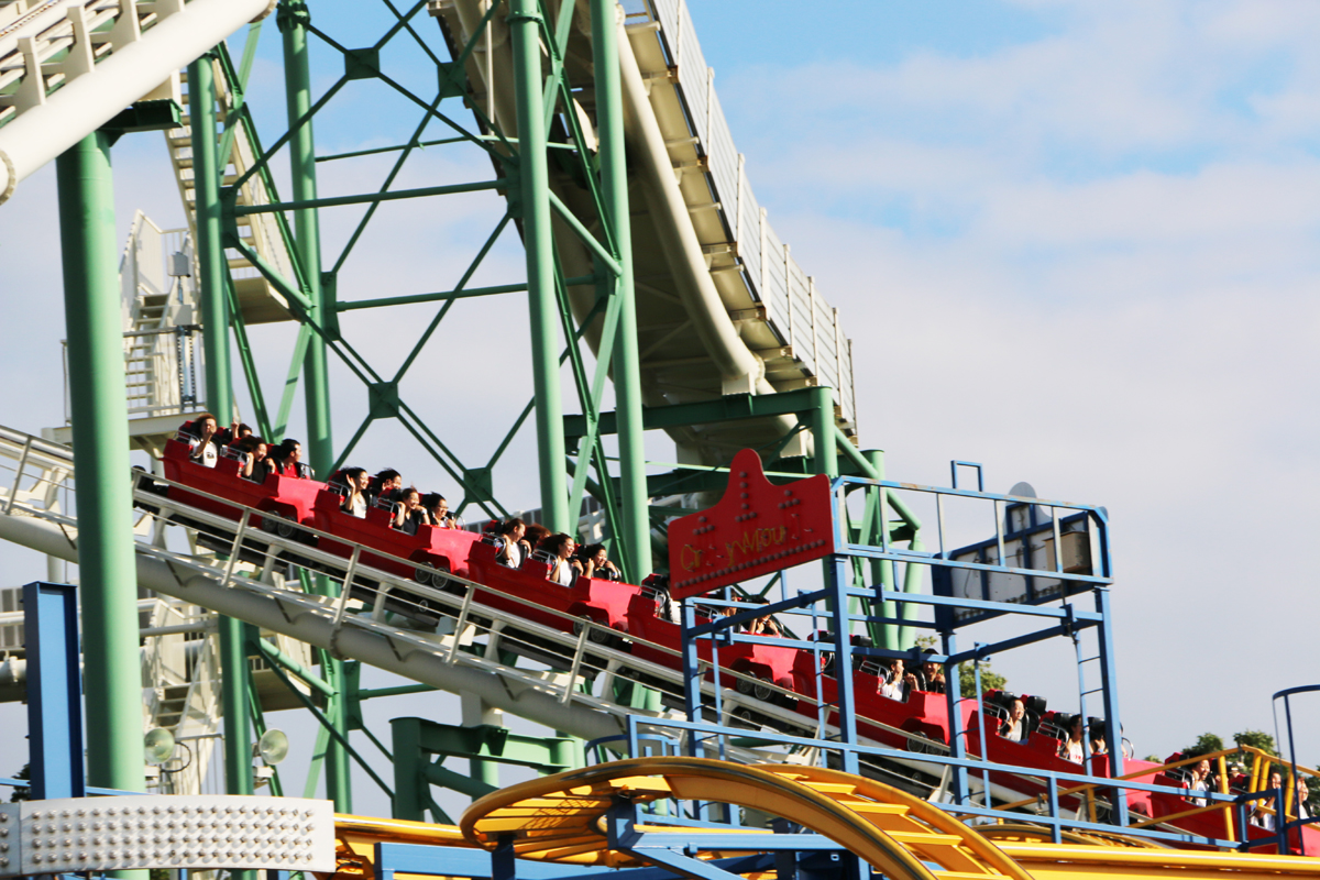 ▲「高さ100mぐらいあったんちゃうか…」とポツリ。絶叫マシンが今回の取材で初めてという蔵屋くん。初心者には刺激が強すぎたかもしれません。