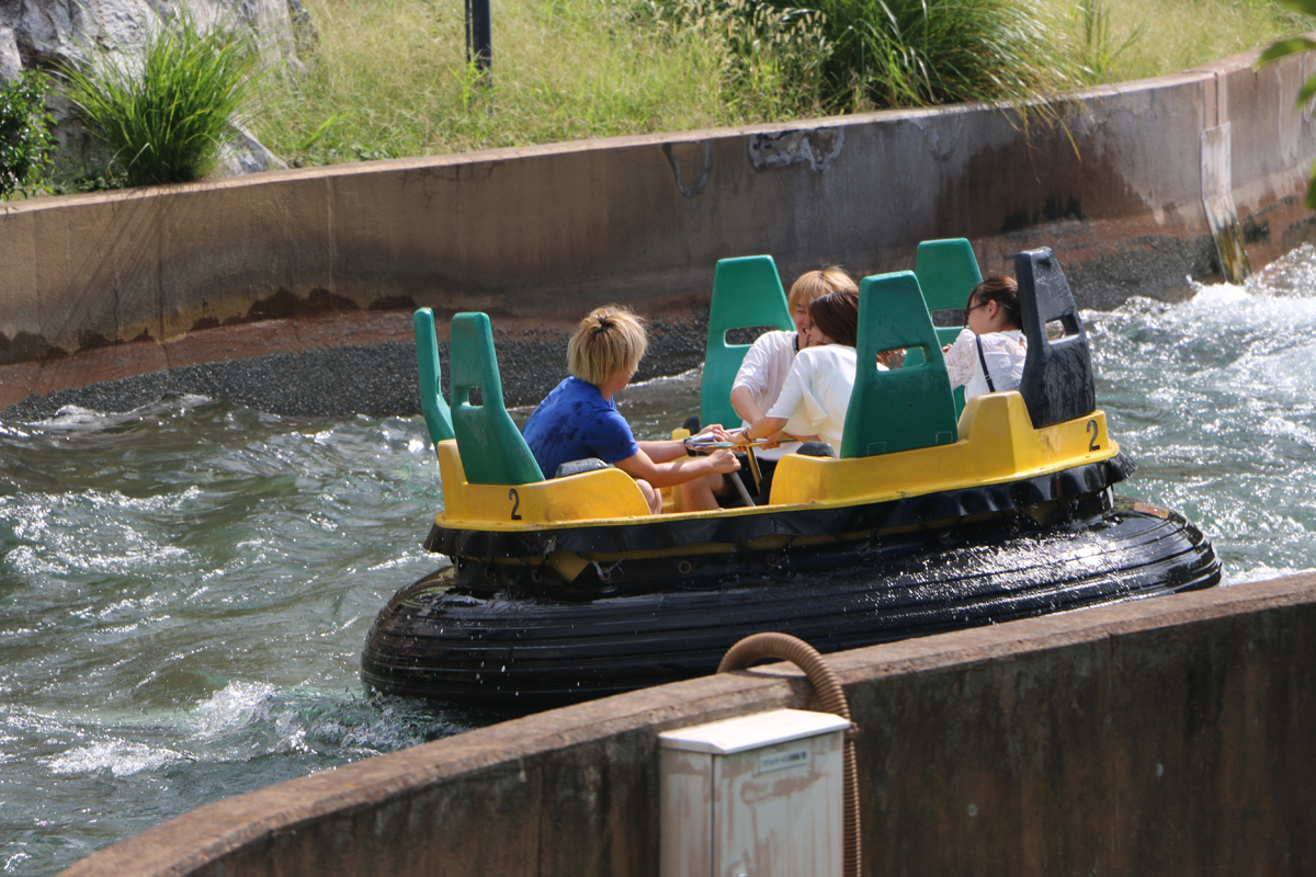 ▲6人乗りの丸いライドに乗ったら絶叫下りのスタート。渓谷のようなコースを下っていくと、水の勢いに流されて猛スピードに!突然やってくるボートの揺れや、激しい水しぶきが最高のスリルをもたらしてくれます。