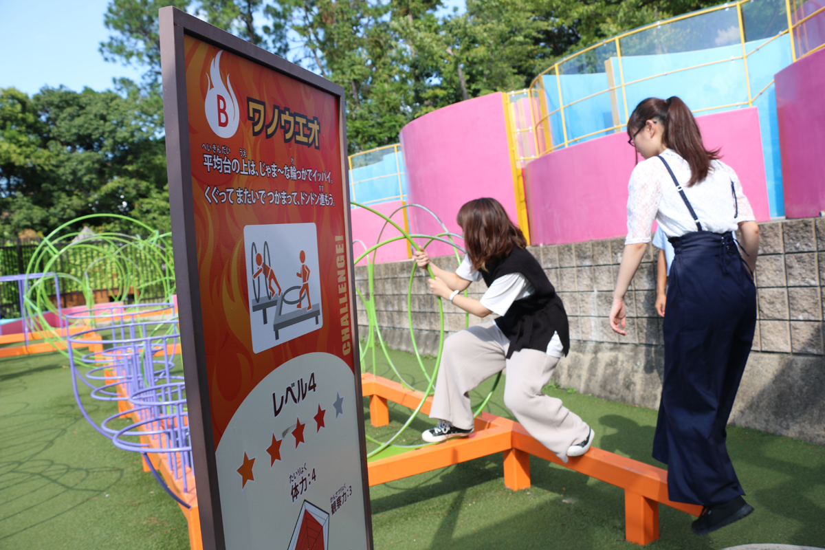想像力を働かせながらコースを進む知育型アスレチック「あたま系アスレチック ヤッテミ~ナ」。ノーマルコースから上級者向けのチャレンジコースまで、全20種類のアスレチック遊具が楽しめるファミリー層に人気のアトラクションです。