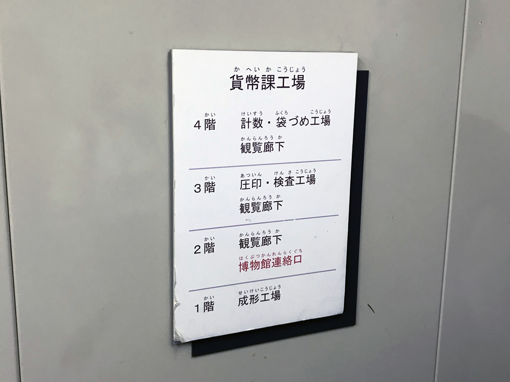 造幣局の貨幣製造工場は広く、4階建てになっています。