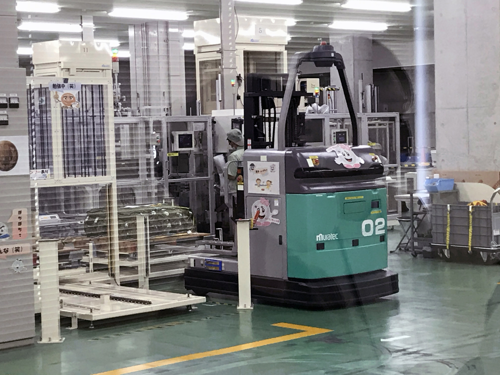 最上階、4階ではロボットによる自動封入封緘作業が行われていました。今の工場は平成12年に建てられたようで、全体的にまだ新しいなという印象でしたが、以降徐々に機械化が進んでいるのだとか。袋詰めにされた貨幣を運搬するリフトもロボットの自動運転でした。