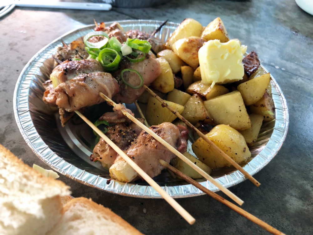 ステーキが入ったサンドイッチは見た目もインパクトがありましたが、味も抜群でした!ステーキとウインナーで肉肉しく“男料理”という感じ。串焼きは見るからに美味しそうでキャンプ感も味わえた一品、もちろん味も良かったです。そしてじゃがバター。じゃがバターが美味しくないわけがありません!1つ食べ出すとパクパク止まらなくなりました。