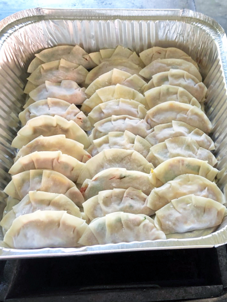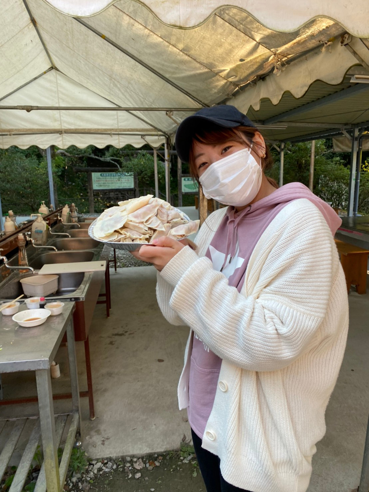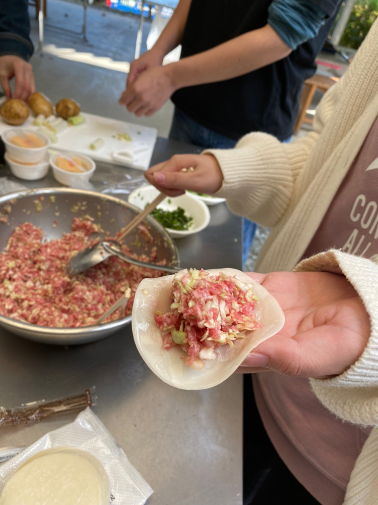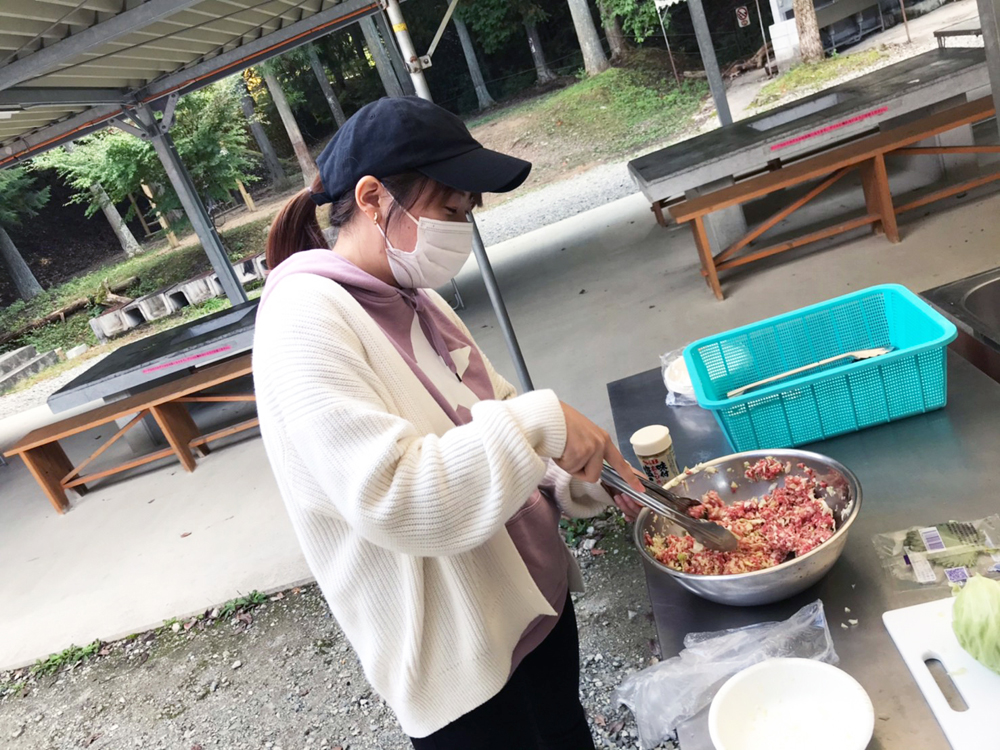女子チームの完成品は見た目が餃子ではなくなりました・・・。野外炊事で餃子は難しかったようです。でも味はまだ分かりません!希望を持ちます・・・!