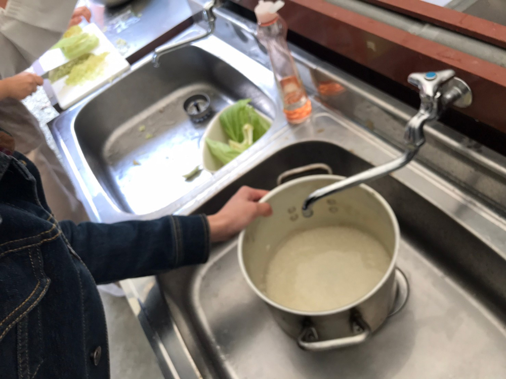 ↑ご飯のかたさを確認する先生。その姿はまるで職人!!(笑)