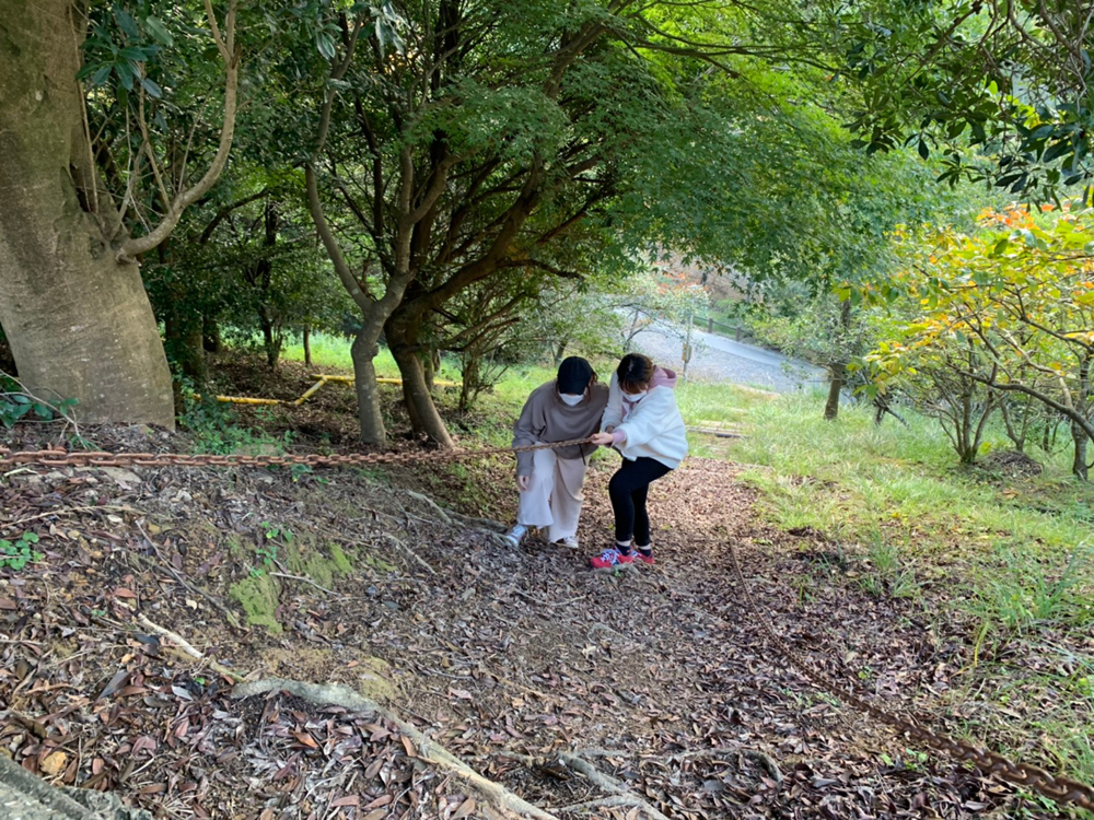 自然の中でたくさん遊べた一日でした。ほんとにここは大阪かな?と思うくらいの大自然で、風が心地よく、そんな中、自炊で作った料理はいつもの何倍も美味しく感じました。ツリーイングを体験した二人もどんな景色を見たのかとても気になります。次は私も体験してみたいです。山道の散歩は田舎育ちの私には懐かしく感じられ、いろんなルートがあって、探検しているみたいでワクワクしました。普段ではできない活動、触れることのない植物。そんな体験をみなさんもぜひしてみてください!