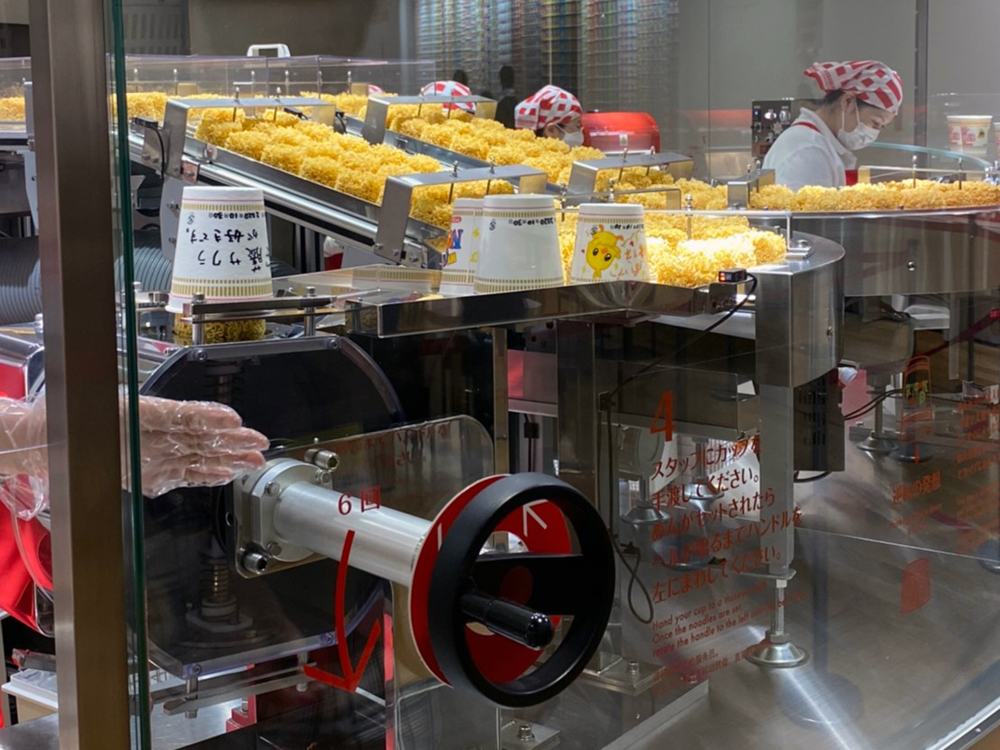 カップヌードルができる過程を見ながらワクワク♪元気な従業員さんたちにもさらにテンションを上げてもらいました。