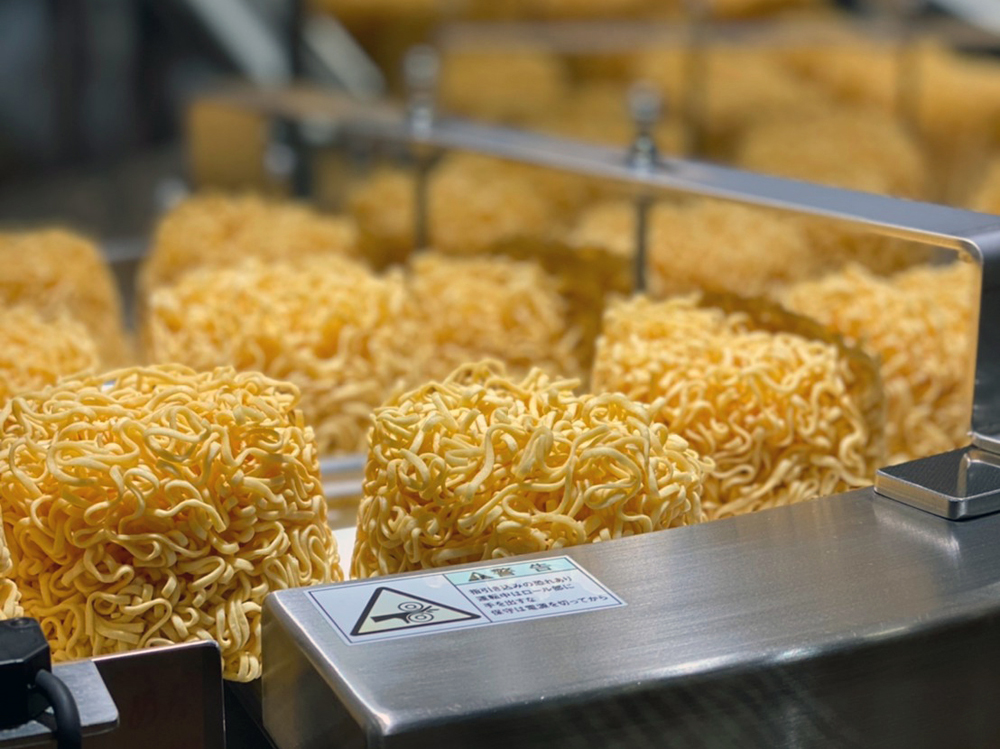 百福氏は戦後、日本中の苦しい食糧難に心を痛めていたとき、たまたま通りかかった闇市で屋台のラーメンをとても幸せそうに食べている人々を見て、人にとって一番大切なのは「食」であるという考えに至りました。その後、事業に失敗して失意にのまれながらも、自分にはまだ“体”も“経験”も“アイデア”もあると奮起し、戦後に見た屋台のラーメンをヒントに、まだ誰も手をつけたことがなかった「家庭でも簡単に食べられるラーメン」づくりに着手しました。