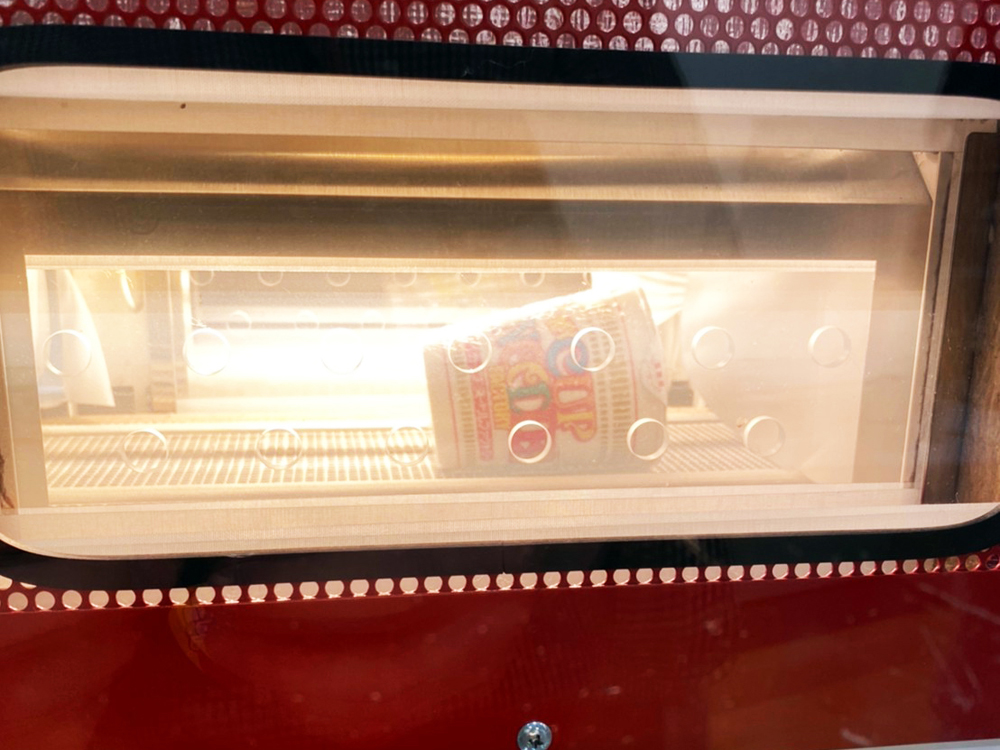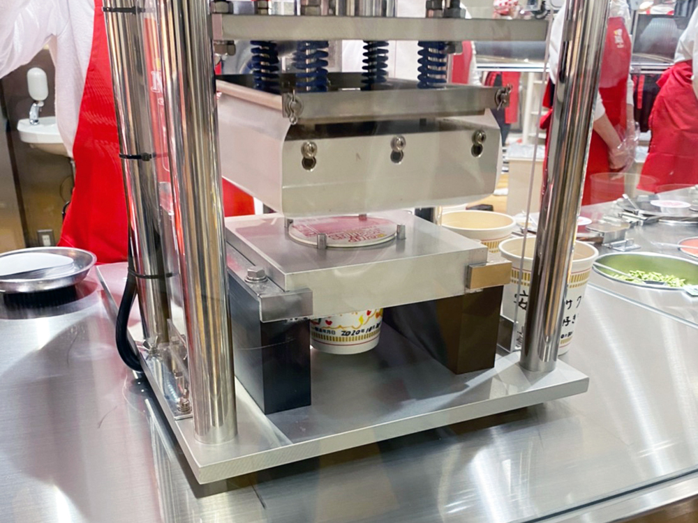 機械でフタをして、シュリンク包装したら世界に一つだけのマイカップヌードルが完成です!